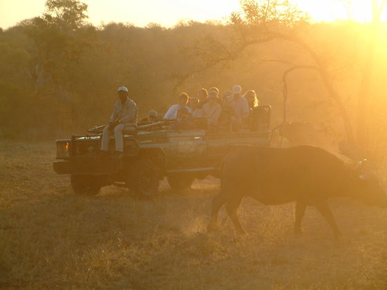 Following afternoon high tea the afternoon game drives start at approximately 16h00 (and half and hour earlier in the winter) and continues into the night. The game drives are again interrupted by a stop-over in the bush for sundowners watching the splendour of the African sun setting over the mountains. The game viewing at night offers the opportunity to view the nocturnal animals including the possibility of lions out on the prowl.